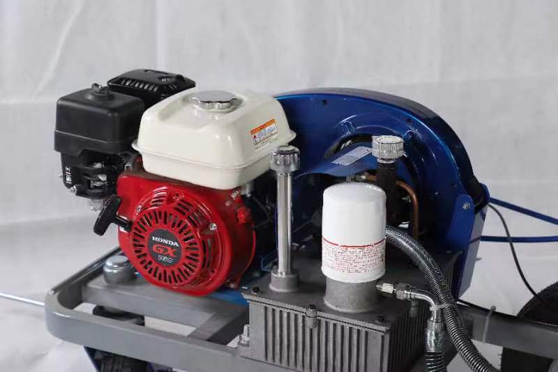 驅(qū)動的液壓系統(tǒng)帶動柱塞泵在汽油發(fā)動機內(nèi)形成高壓進行噴涂; 因此劃線厚度均勻,噴涂流暢。